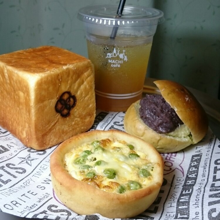今日のランチはよつばパンのパンで。 抹茶パンのあんバター、グリンピースとツナのキッシュ。ローソンのシトラスティーとともに。 キューブぱんは明日の朝ごはんに。 #パンが好き #わたしの街 #パン #よつばパン #佐賀