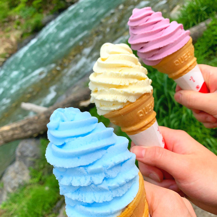 今回は猛暑日だった為アイスを購入し清津川で涼みながらいただきました。