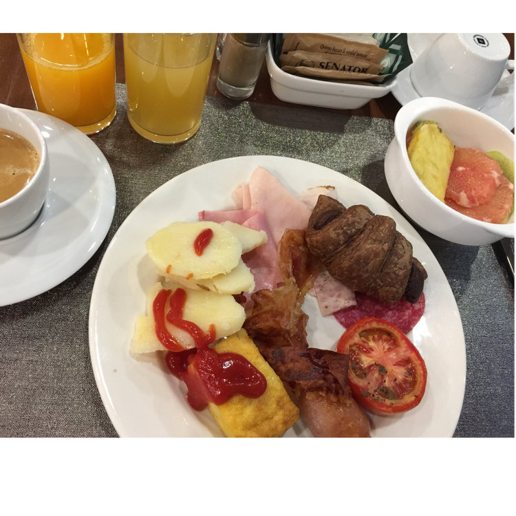 リアルスペインの旅66 セナトール バラハス ホテル 最後に泊まったセナトール バラハス ホテルの朝食 割と品数ありです(*´꒳`*) ここは生搾りのオレンジジュースが超おすすめ🍹 そしてこのホテルはマドリード空港まで車で10分ぐらいなのでアクセスが滅茶苦茶よいのです(*´꒳`*) あーもうスペイン旅行が終わり‼️ 早かった〜〜‼️
