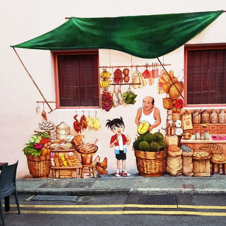 シンガポールにできた名探偵コナンの壁画 現地で映画上映前にできたみたい! 位置情報はちょっとズレてるかも、。