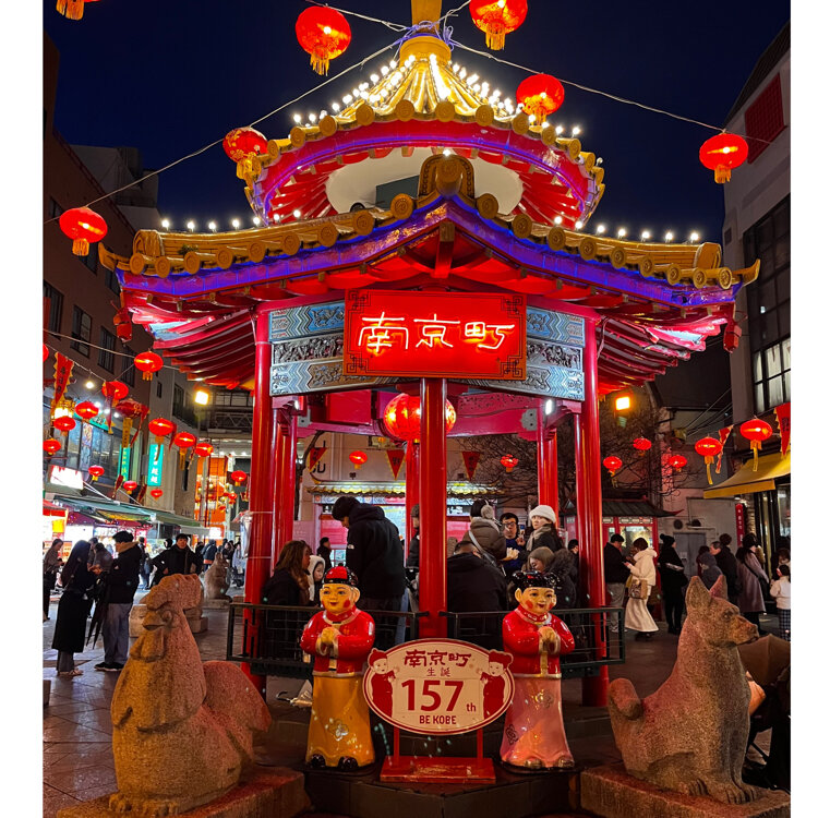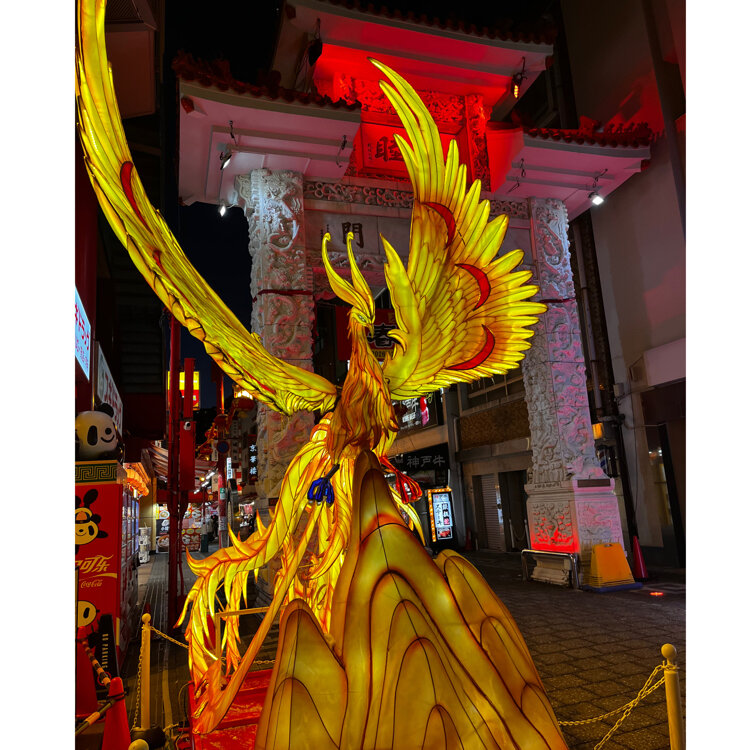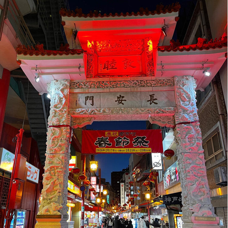 『南京町』🏮🧧 夕食後は「めりけんパーク」へ 途中南京町を通ります♪ かわいい女の子がお迎えです😆 夜の南京町はランタンが灯り 雰囲気満点✨ 屋台は賑やかでりんご飴🍎や フルーツ飴は大人気です💕 長安門には鳳凰🐦‍🔥✨ 中華街を抜けて港へ向かいますが 夜はますます冷えて寒いこと🥶 ・ ・ #開運旅 #ことりっぷと一緒 #南京町 #南京町広場 #神戸南京町 #チャイナタウン #中華街 #屋台 #長安門 #元町 #神戸 #神戸市 #兵庫県 #兵庫 #ことりっぷ神戸