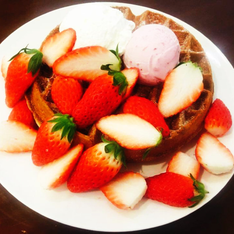 外はカリッ、中はふわふわの焼きたてワッフルでした。