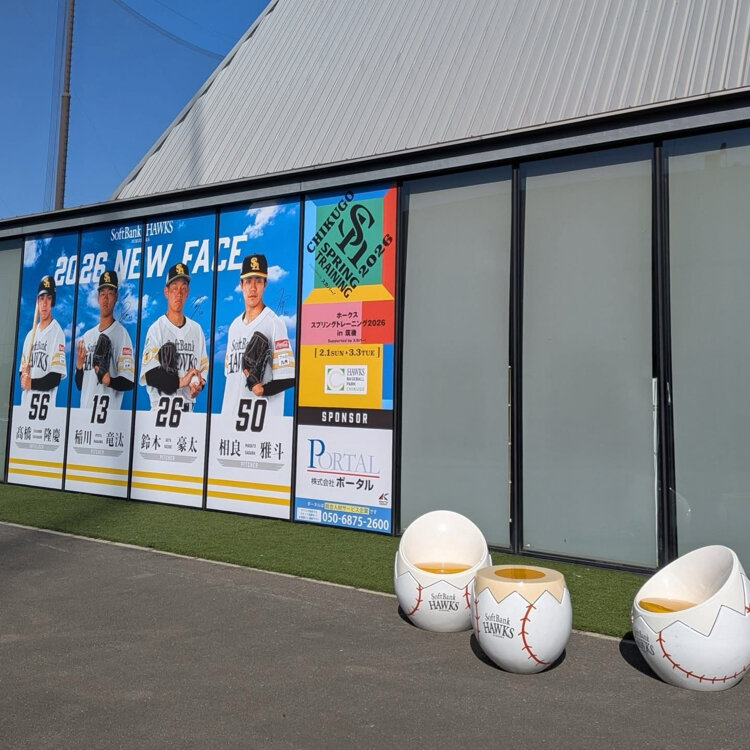 プロ野球がキャンプイン!筑後市のソフトバンクホークス施設でも、若手中心のスプリングトレーニングが始まりました! この日は、主力メンバーの柳田選手や王会長の姿もあったようで、一目見ようと沢山のファンが集まっていました🤗 生で見ると、みんな大きな声を出してて迫力満点💯 ひとつひとつ、本当に噛み締めるように、体の動かし方を確認しています。 4枚目の写真は、タマスタグルメのひとつ·ホークス選手サロンカレー🍛 選手が寮で食べているものと同じレシピで再現されたものなんです。この、スプリングトレーニング期間中は「アイス総選挙」という企画もあってますので、そちらもお楽しみに! ※休日もありますので、お確かめになってご来場されてくださいね⚾ #筑後市 #福岡県 #プロ野球 #キャンプイン #sbhawks