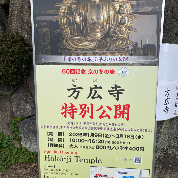 京の冬の旅 方広寺 豊臣家滅亡へ繋がる、あの鐘があるところですね。 知恩院の鐘よりも大きいのは、はじめて知りました。 秀吉や秀頼が何度も再建した大仏…。 今に伝わる盧舎那仏は、5代目に建立された1/10スケールとのこと…。 当時の大きさの大仏残っていたら、世界遺産級ですね🤔 #開運旅 #京の冬の旅 #非公開文化財特別公開 #大河ドラマ #豊臣家