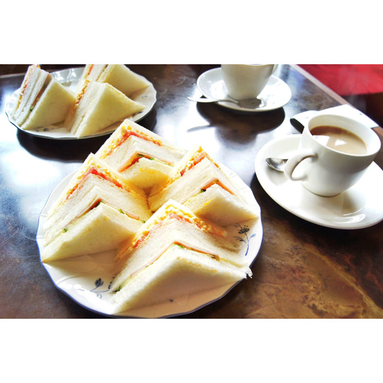 大阪の四天王寺夕陽ヶ丘の喫茶マーブルのサンドイッチセット。 ランチには珍しいハムエッグ定食などがありました。