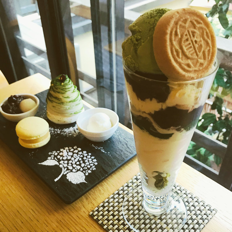 京都祇園 あのん〜 4周年のお花がたくさんありました㊗️ その中に〜舘ひろしさんのお花も💐 抹茶ぱふぇに もなかの皮〜香ばしくってパリパリ〜✨✨ あっ紫陽花 みーつけた💠 #祇園#お抹茶ぱふえ