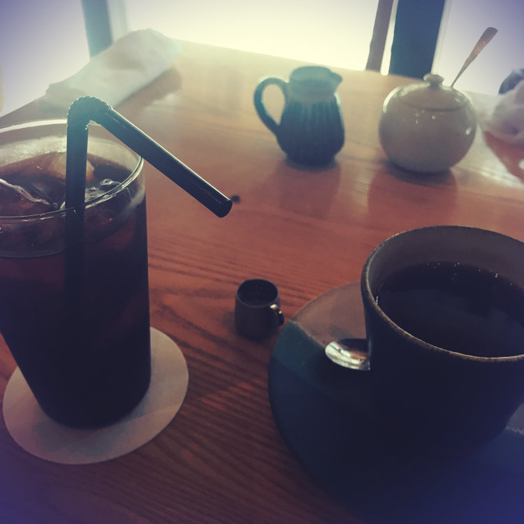 柳町にて 8時間抽出した水出しアイスコーヒーと 浅煎りホット。