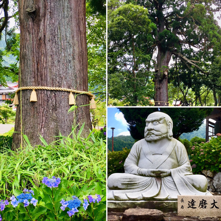 久沢山 全長寺 滋賀県 余呉湖の北にある曹洞宗のお寺です。 左&右上…樹齢五百年と言われ、お寺が開かれた頃からあった一本杉🌲 高さ30m、幹周り5.8mあるそうです。 右下…境内の達磨像。本堂の「達磨大画像」を元に作られた石像です。 拝観の際、絵を見せて頂きましたが、畳4畳分もある、迫力ある八方睨みの達磨さんでした。 絵の撮影はご遠慮くださいとの事だったので、お庭の石像をパシャリ🤳 「達磨大画像」以外は撮影🆗です。 紫陽花が美しく、歴史を感じるお寺でした。 #全長寺 #湖北 #あじさい #お寺 #長浜 #一本杉 #達磨さん #夏旅2019