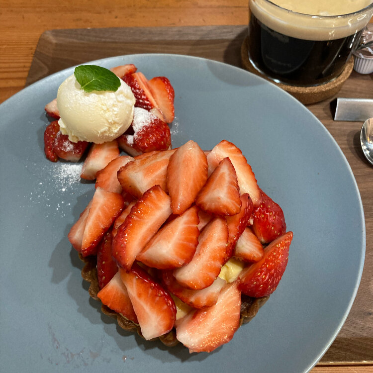 昨夜、同居の次男と言い合いになって、ストレス満載の朝を迎えて、朝一番から1人でスィーツを食べに🍓😅 ストレス解消は食べてしまう私で