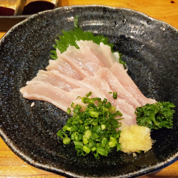 九州の旅 地鶏のささみのお刺身 生なので食中毒が危ないので30分以内に食べて下さいと言われた❗ 生姜醤油に付けて美味しかった(*^ω^)
