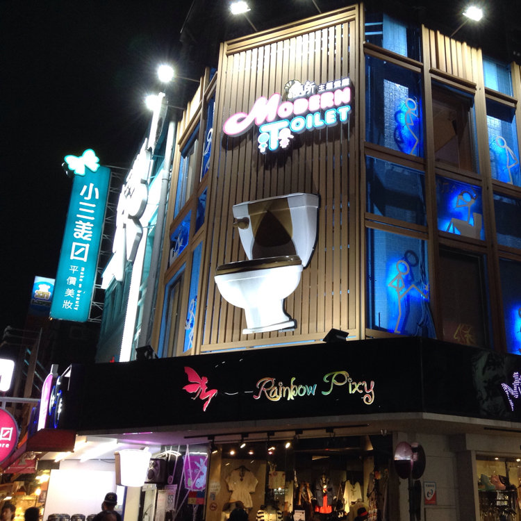 台北の夜、西門町を散策してるとでっかいトイレが表れた(笑) ちなみにご飯屋さんっぽかった(笑)入らなかったけど(笑)