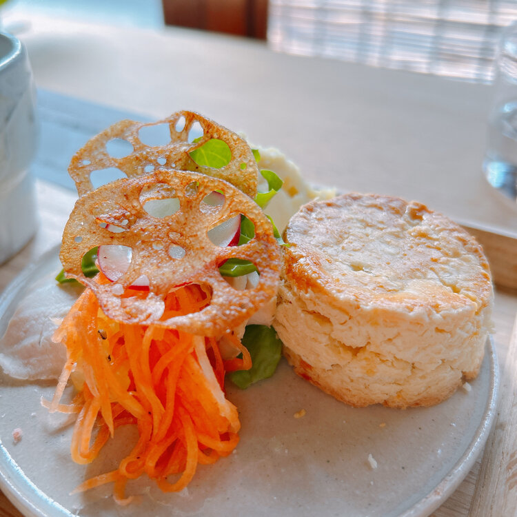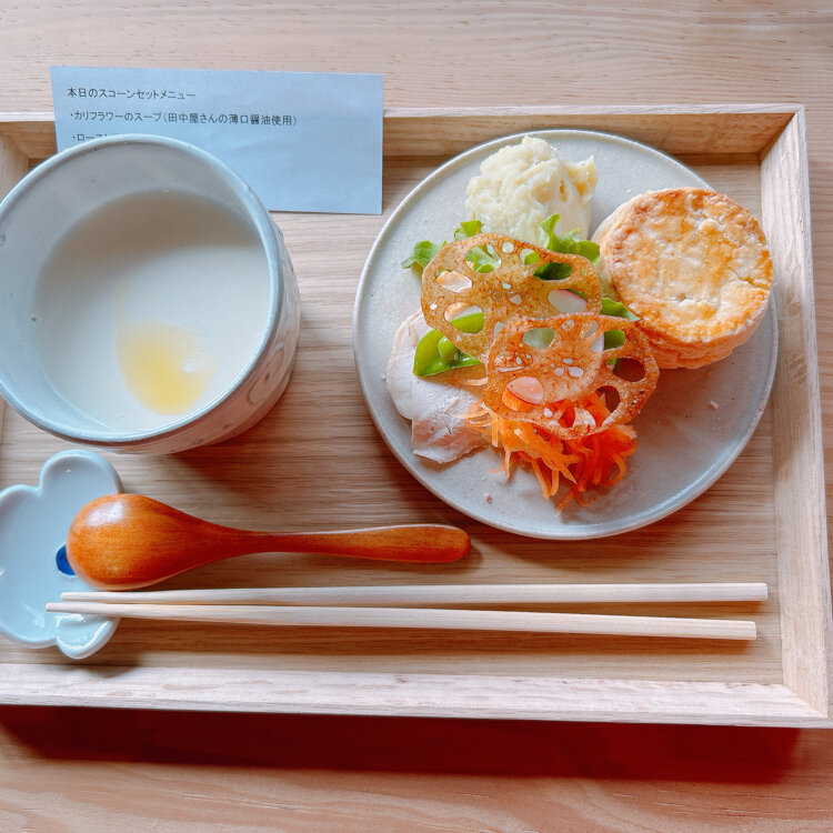 友人と素敵な古民家カフェに行きました🌼 スコーンとサラダとスープのセット🍲そしてカフェオレでした☕️美味しかった☺️優しいお味!カリフラワーのポタージュがさっぱり美味しい✨おしゃれだし、大人気で人がいっぱいだったけど、みんな静かな雰囲気を守っている感じでした😌1人でも行きたくなるような素敵なカフェでした🫶トイレに繋がる中庭も趣があって素敵でした🥰