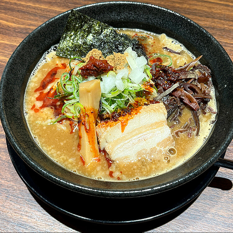 仕事•••納まったのか???今年も頑張った🙌🏻 少々残業して、遅いランチ。 麺匠和蔵 秋津店にて、旨辛魚介豚骨らーめんを太麺で注文しましたー🥳