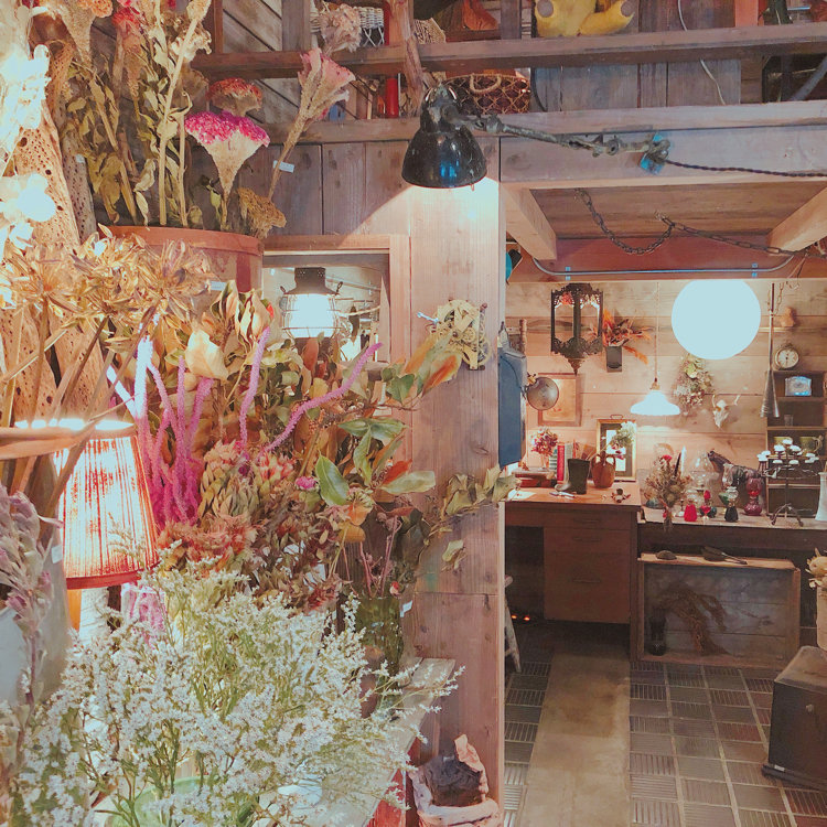 *その灯ぐらし ❁⃘*.゚𖠚ᐝ . ドライフラワーと暮らしのお店。 . 店内一面ドライフラワーやアンティーク雑貨で埋め尽くされてて、ハーバリウムなどのワークショップやカフェとして利用できるお店 ❁⃘*.゚ . ついつい長居してしまう素敵な空間でした...♡ .