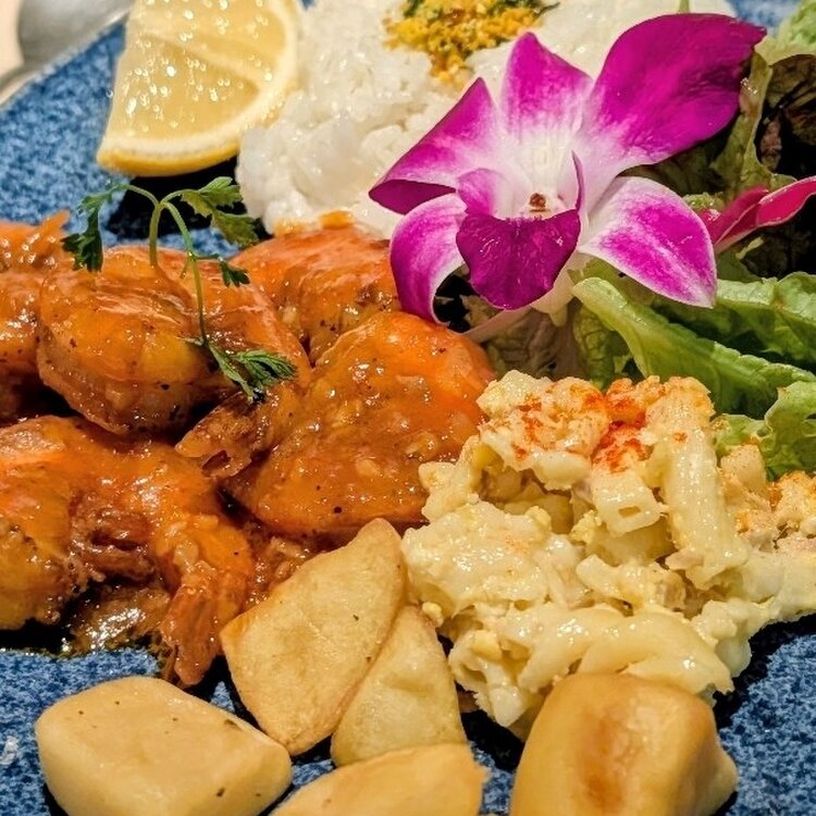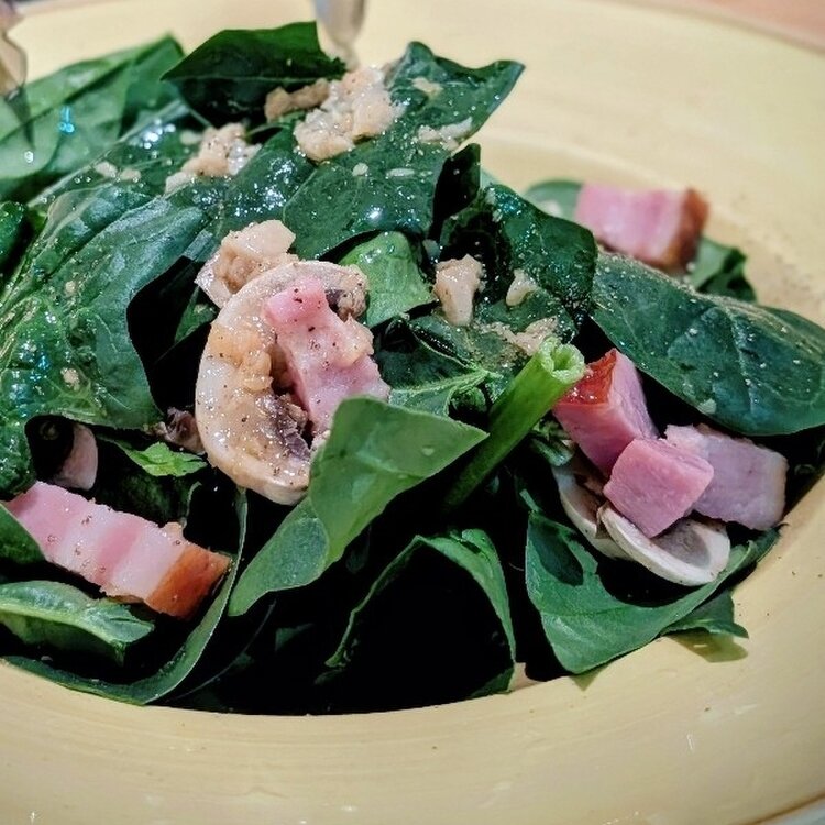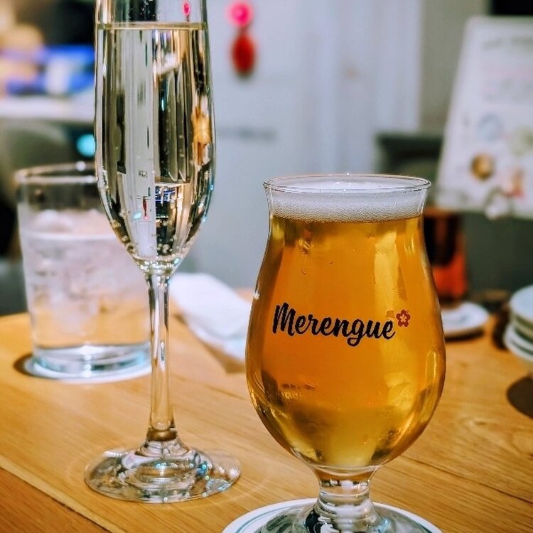 スパークリングワイン🍷 シルクエール🍺 ほうれん草とベーコンのサラダ チーズロコモコ ガーリックシュリンプ🦐 Merengueさんにて