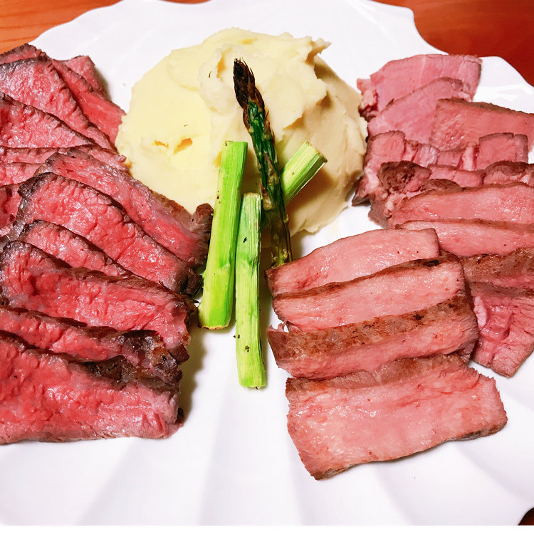 原価ビストロBAN飯田橋からお取り寄せしたローストビーフと厚切りタン。 お店オリジナルのソースも美味しかった〜