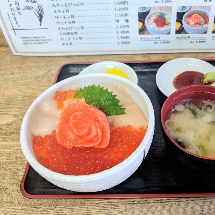 小樽鱗友朝市にある朝市食堂さん 朝4時から花丼をいただきました 具がぎっしり多め 価格も良心的だと思います 海鮮丼の他にも焼魚定食もあります #おいしい旅