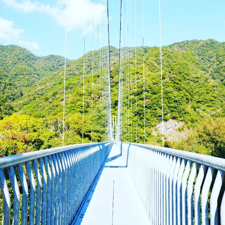綾ユネスコエコパークにある高さ142mの大吊橋。