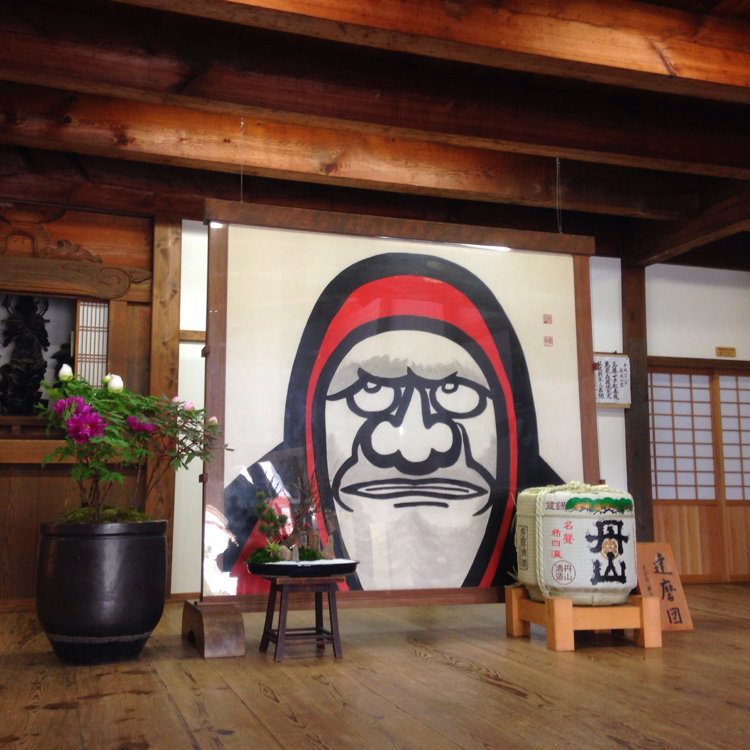 本堂の入口で達磨図がお迎えしてくれました。迫力あります。色や周りのお正月飾りでとてもおめでたい雰囲気!