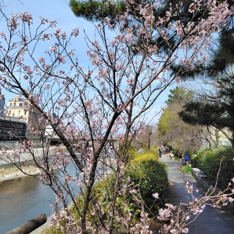 快晴☀青空🌸春風に誘われて 華だよりの京のみやこへ😽 あの洛ちゃんは若女将修行へ また何年後かに📺️ 京町数え唄を口ずさみながら 鴨川・宮川沿いを歩く🌸ぽかポカ陽気