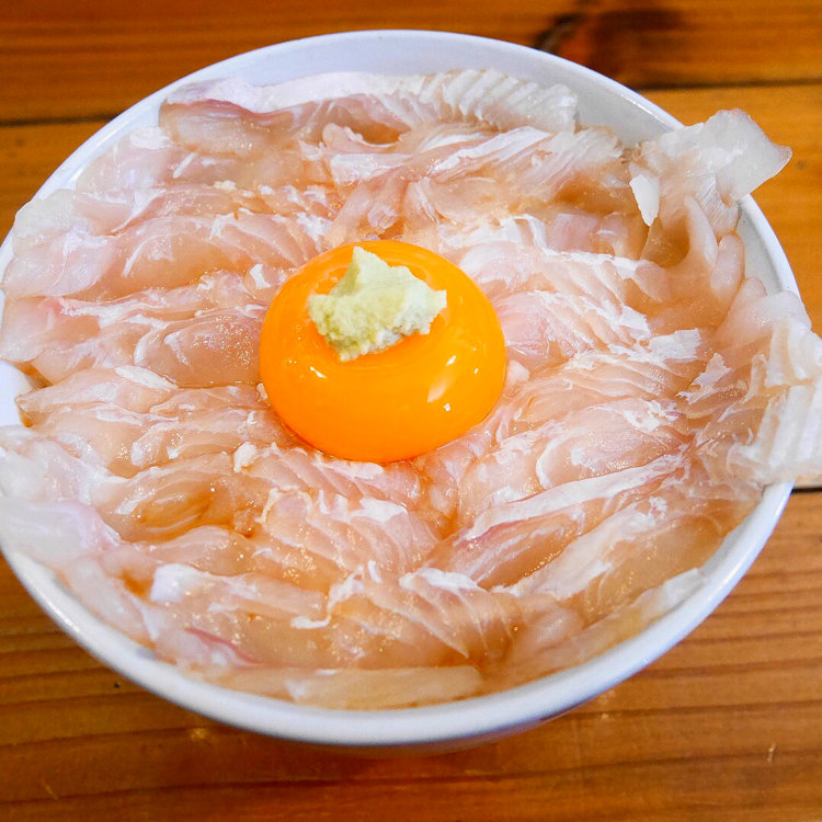 八戸、陸奥湊駅近くのみなと食堂さんの 名物「平目漬け丼」 にんにく醤油と淡白な平目の身と卵黄を混ぜていただきます。 #おいしい旅