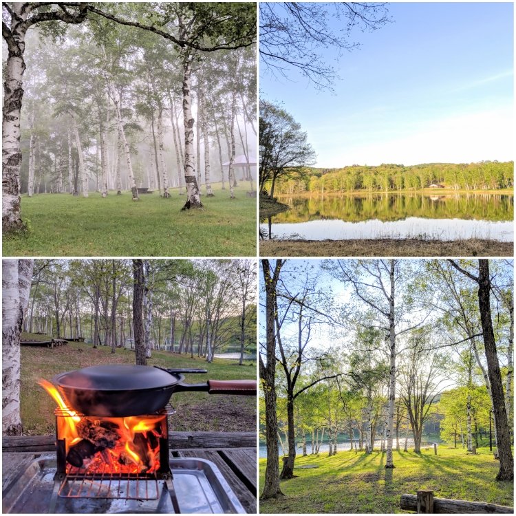 【岩洞湖家族旅行村】白樺と湖畔の緑の景色がキレイな無料キャンプ場です🏕 炊事用の薪も無料で使わせてもらえるのはありがたかったです