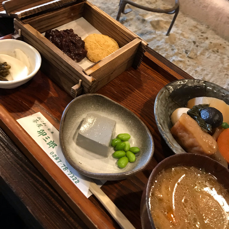 いつもは毎回同じお店に行くのですが、今回は新しく開拓して、ここ「卯三郎」に行ってみました✨私はあんこときな粉のつきたてお餅に煮物とけんちん汁がセットになった「おぼこ膳」にしました。お餅も煮物もけんちん汁もとっても美味しかったです😊