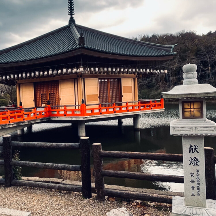 安倍晴明の縁の地。水辺に浮かぶお堂は7周すると七難をよけるとされています。