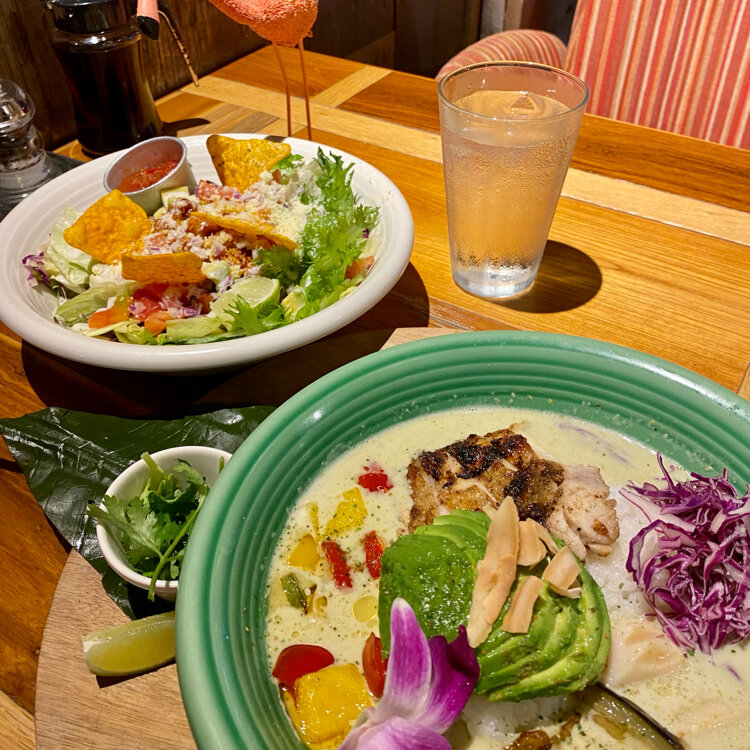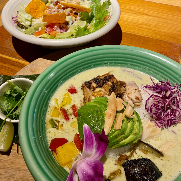 コナズ珈琲 成城店 先日、コナズ珈琲小平店へ初めて行き、心地良さにすっかり虜になり、ぜひ夫にもこのちょっとハワイ気分の非日常感を味あわせてあげたいと成城店へ。 ハワイ島コナは、大昔にゃんと婚前旅行に出かけた思い出の地( *´艸`)であり その後も家族と思い出を重ねた場所でもあり… またみんなで行けたらなぁ〜と夢みつつ 美味しい時間を楽しみました。 今回は夏季限定のココナッツグリーンカレーとタコライス、そしてデザートにプレーンパンケーキにフルーツのトッピングをしてもらいました。 お腹いっぱいになってこのまま山梨へ。 #美味しいスイーツ #コナズ珈琲#パンケーキ#非日常を楽しむ#すっかり夢中#また行きたいな###