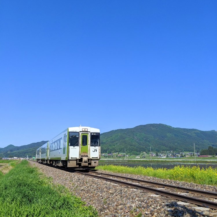 【銀河ドリームライン釜石線】ラクビーワールドカップ🏆で岩手県盛り上がってますね〜🏉 電線も建物も無く田んぼと菜の花を揺らして走るディーゼル列車が印象的でした😊