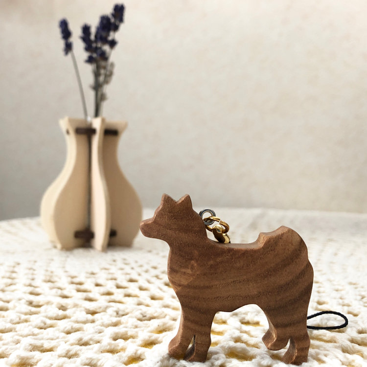 槐(えんじゅ)の木を使用している🐕秋田犬のストラップ