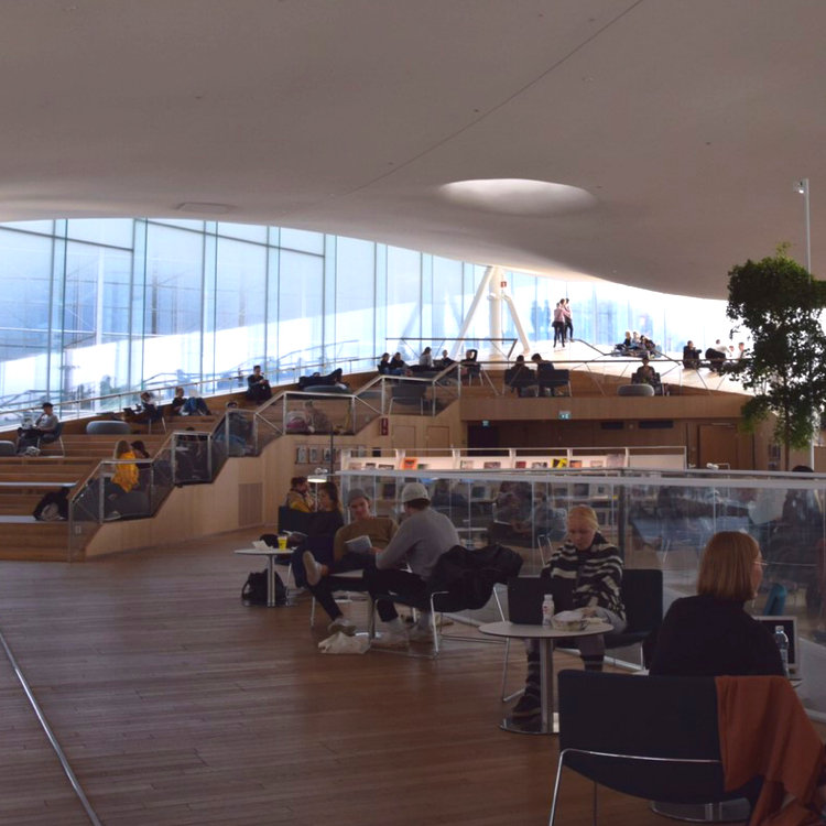 昨年12月にヘルシンキ中央駅近くにオープンした、ヘルシンキ中央図書館Oodi(オーディ)。独立100周年のプロジェクトでできた図書館だそうです。