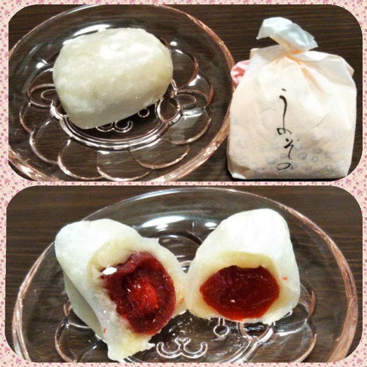 小型の大福ね。中に蜜で煮た梅と白餡が入っているの。梅には種もあったわよ。それがね……この梅が甘しょっぱくてトロンとしていて、白餡と調和しているのね(^^)d う、うまい😋