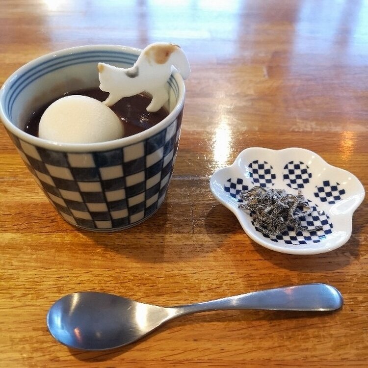 上にはミニ雪見だいふくがのっていて、冷たい雪見だいふくアイス🍨と熱々の小豆汁粉を一緒にスプーン🥄ですくって食べるととっても美味しいです💓😋🎶