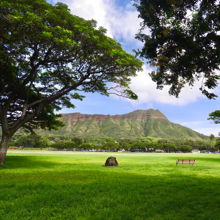 *のんびりできる場所* ここすごく風が気持ちいいです。 ワイキキビーチは少し蒸し暑かったけど、ここまで来たら高原のような爽やかさ🌳 ほとんど人がいなくて ダイヤモンドヘッドを見ながら、ずっとベンチに座っていました😊