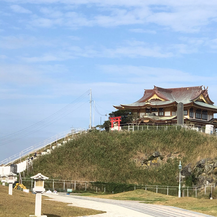 青森県八戸市鮫町にある島で、商売繁盛、漁業安全の守り神として弁財天がまつられた神社です。