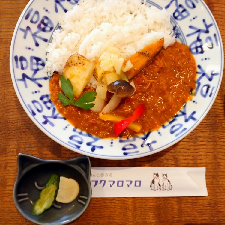 JR勝川駅から商店街を数分歩いたところにあるお店。昼はランチ、夜は居酒屋さんです。2匹の看板猫がいる「フクフクマロマロ」さん。 カレーは本格的で野菜もたくさん。インテリアも可愛いくて居心地が良かったです