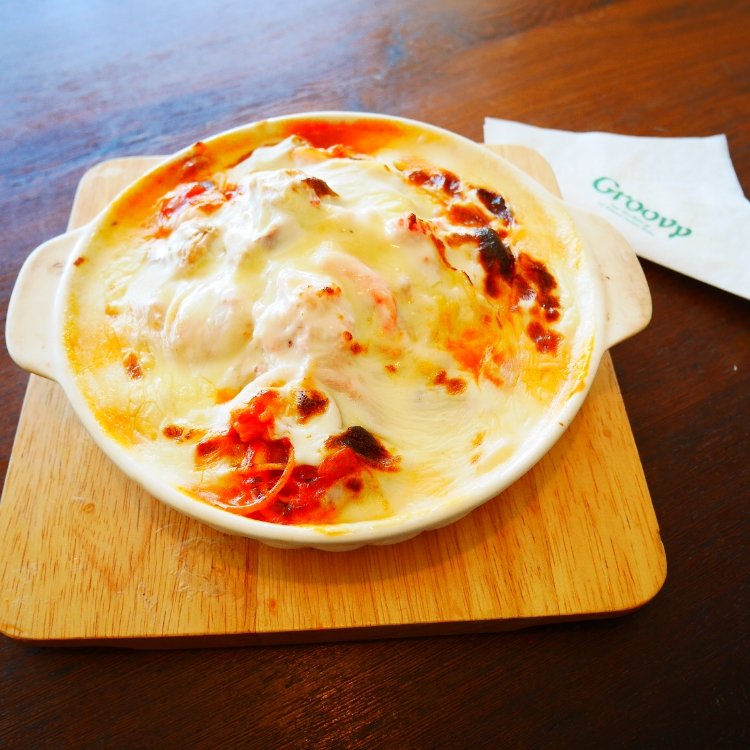 偕楽園でたくさん歩いたあとに、熱々のグラタンパスタはぴったりですね。