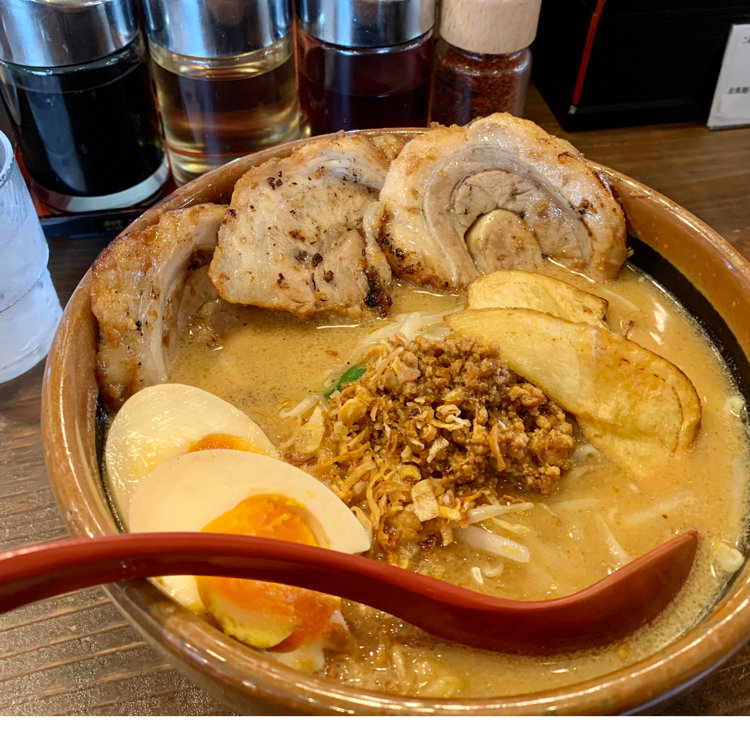 米子の味噌ラーメン専門店!平日のランチはトッピングが1つ無料と言うことで、北海道味噌から北海道炙りチャーシューに卵トッピングです。 ランチとても混んでましたが、濃厚味噌と柔らかいチャーシュー、とても美味しかったです!