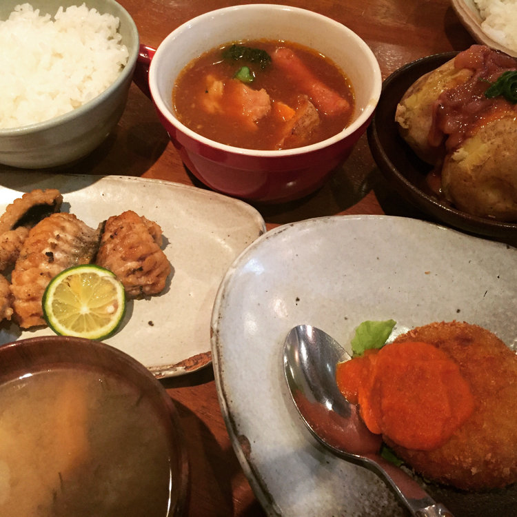 京都伏見 【hokkaido 高田家】にてランチ。 ☆ 北海道の食材を中心にしたメニューで、 カニクリームコロッケは中のクリームがカニ味噌風味で美味しかったです(≧∇≦)。 その他は黒穴子のタレ焼き、スープカレー、函館塩辛のジャガバター。 ☆ #ランチ #京都 #hokkaido高田家 #lunch #kyoto