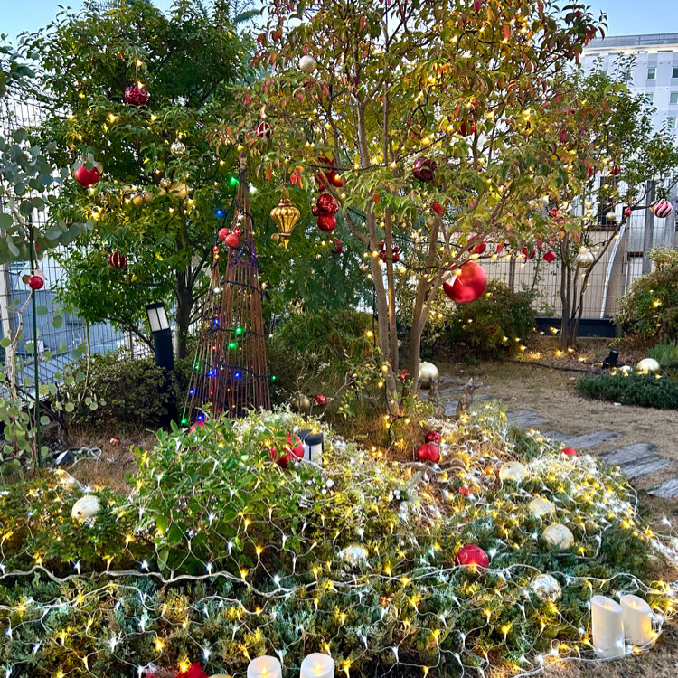 この時期のお楽しみは、屋上のクリスマス装飾。