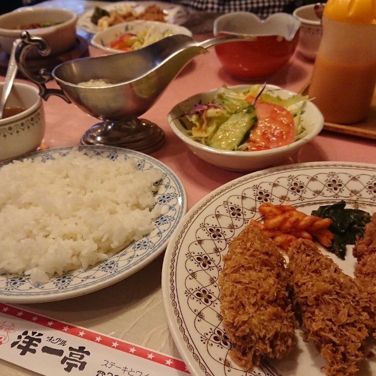 東中野 洋一亭 カキフライ定食 850円也 カキがひとつ足りないから、エビフライでもいい?といわれ、もちろんです!と即答しました(笑) 手作りタルタルソースが絶品。 サラダのドレッシングも絶品。 こういうものに手間かけてるお店は間違いないですね。お腹いっぱいのランチでした😊✨