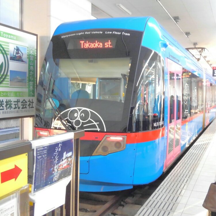 《万葉線》 高岡はドラえもんの作者で有名な藤子・F・不二雄の出身地で、高岡を走る電車「万葉線」にはドラえもんがデザインされたドラえもんトラムが走っています🚃ドラえもんトラムで、歴史ある町高岡を走ってみてください❗