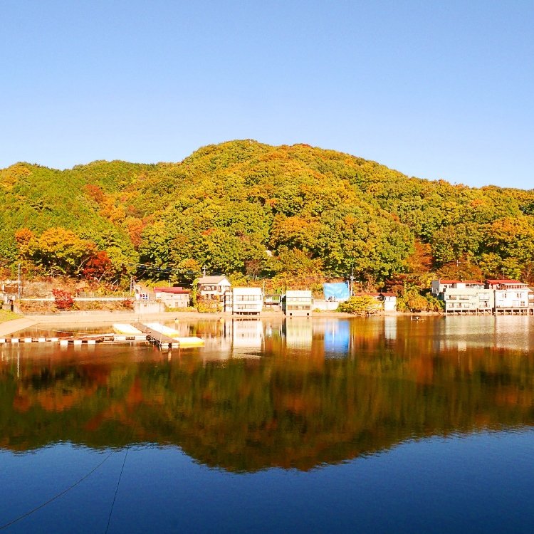 紅葉のリフレクションが美しい 外秩父の円良田湖。 標高が少し高いので、ふもとより紅葉が進んでいます。 なんとなく、伊根の舟屋みたいに見えませんか?😊 外秩父の秋色探し⑦ #円良田湖 #秩父線 #秩父鉄道 #秩父 #紅葉 #湖 #秋の色彩 #外秩父の秋色探し