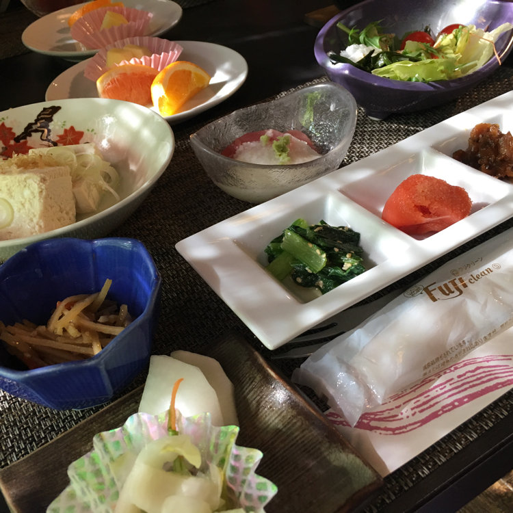 宿泊時は予約数が少なくて、普段の朝食はバイキングなのにこの日は御膳スタイル。 香の物、きんぴらごぼう、冷奴、野菜サラダ、フルーツ、載せきれないけど、ご飯(又はお粥)汁、温泉卵、納豆海苔、岩泉ヨーグルト。 鬼南蛮、ウニしいたけのご飯のお供と、すんごいボリューム。ホテルや旅館に泊まると普段以上に食べられるねは一体なぜ?食べ過ぎちゃうのはなんでだろー。 #岩手県花巻市#南花巻温泉郷#温泉巡り# 渡り温泉#渡り温泉別邸楓