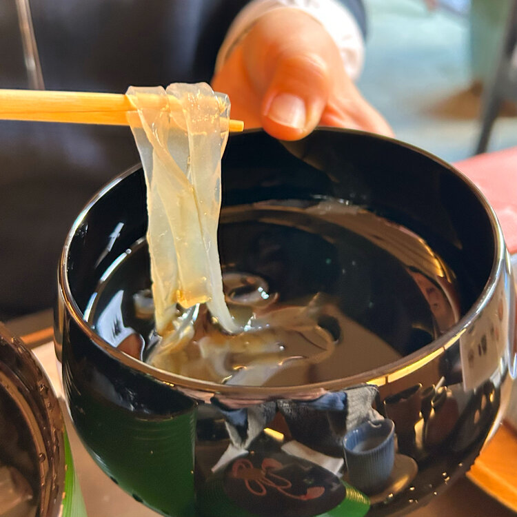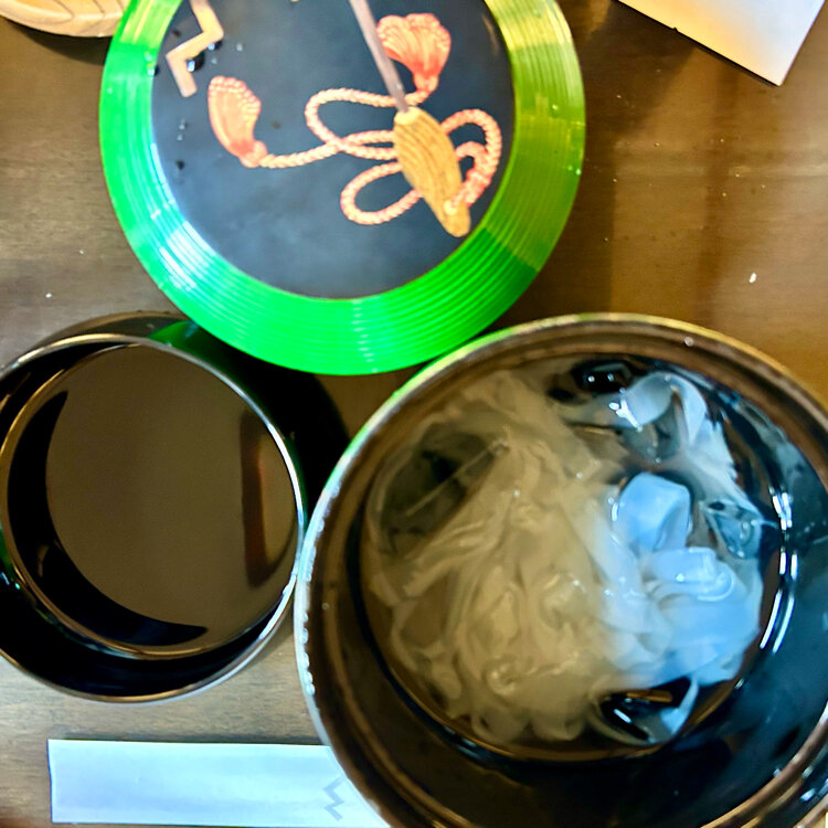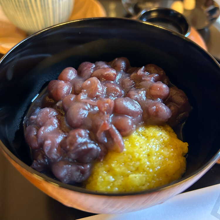 「節分の日に」 < 鍵善良房 > ② *きび餅ぜんざい 冬期のみ。きび餅に合うしっかりした甘さのあんは国産小豆を厳選。風味豊かなきび餅と優しい甘さの粒あんが絶品。塩昆布付き。 *くずきり 「鍵善」の代名詞「くずきり」。 原材料は葛粉と水のみ、素材は吟味した末に、吉野大宇陀・森野吉野本舗のを使い続け、黒蜜は沖縄の小さな島のものを使用。つるんとした喉ごし、弾力ある歯ごたえで、季節を問わず頂けます。 3組程待って、お庭が見える席に案内されました。 「くずきり」が有名な「鍵善」さん。友達は一度食べてみたかったと迷わずオーダー。黒蜜を選びました。 この日私はぜんざいを食べようと思っていて、「きび餅」も気になっていたので、「きび餅ぜんざい」にしました。 頂いた和三盆糖やお茶も美味しくてほっこり、二人とも思いが叶って幸せな時間を過ごしました。 雑貨屋さんやお土産物屋さんを見ながら、河原町まで戻り、高島屋さんのデパ地下に寄り、「恵方巻」を買って阪急電車に乗りました。 #節分の日に#鍵善良房#老舗和菓子店#喫茶室#きび餅ぜんざい#くずきり#開運旅#私のことりっぷ旅