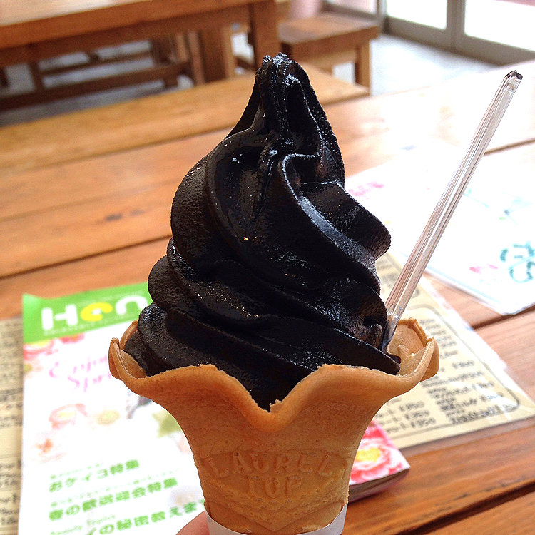 こんばんは😃🌃 インパクト大のソフトクリームですね~💓 炭、体に良いとききますね。🖤
