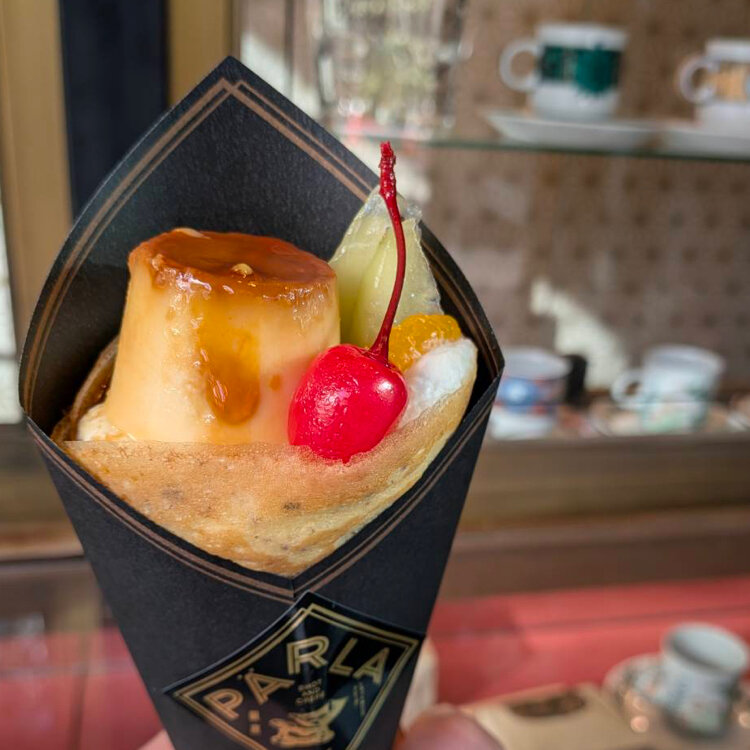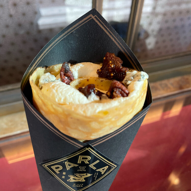 𖧷 ℙ 𝔸 ℝ 𝕃 𝔸 𖧷 クレープと焼き菓子のお店 ✽.。 ⚑ ブルーチーズと無花果の赤ワイン煮 ¥1,400 ⚑ プリン•ア•ラ•モード ¥1,680 大人のクレープ お店の隣にカフェスペースがあって 飲食が出来ます𓇋𓌉 #クレープ #パーラ #銀座