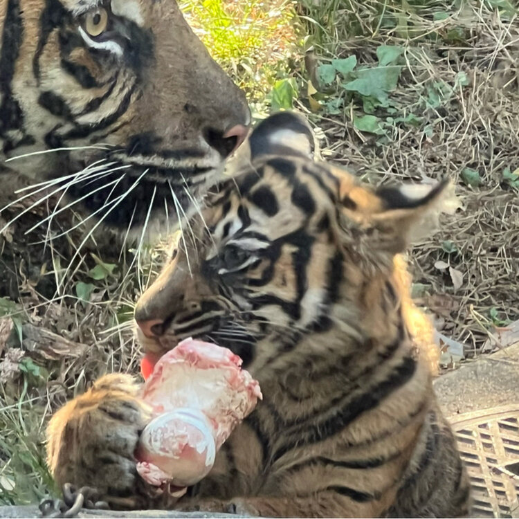 【東京都恩賜上野動物園④】 ランチは園内にある「さるやまキッチン」で 「キッズハンバーグランチ」を(^人^) 大人だけだったのに オーダー可能だったことに感謝です(笑)   🐅スマトラトラの「ミンピ」が 今年7月4日に出産した「レスタ」(メス)と「ベラニ」(オス) 公開展示が約1時間あるとのことで👀 ゴツくて太い🦴骨が置いてあるなと思いつつ 🐅姿が見えなくてキョロキョロしていたら いつの間にか🦴半分に(笑) お母さんに見守られながら 生後5ヶ月の子が迫力ある目力を放ちつつ 🦴かぶりついている姿が印象的でした   🐻‍❄️ホッキョクグマ✨ 「イコロ」(オス)と「デア」(メス)の2頭が 飼育されている様なのですが 1頭だけ外に出ていました👀   10日ほど前の正面入口は人もまばらでしたが ニュースで見る限り今日から🐼大変なことになっていますね💧 一人でも多くの方が🐼🐼会えます様に(^人^) #ことりっぷ #上野動物園 #東京都恩賜上野動物園