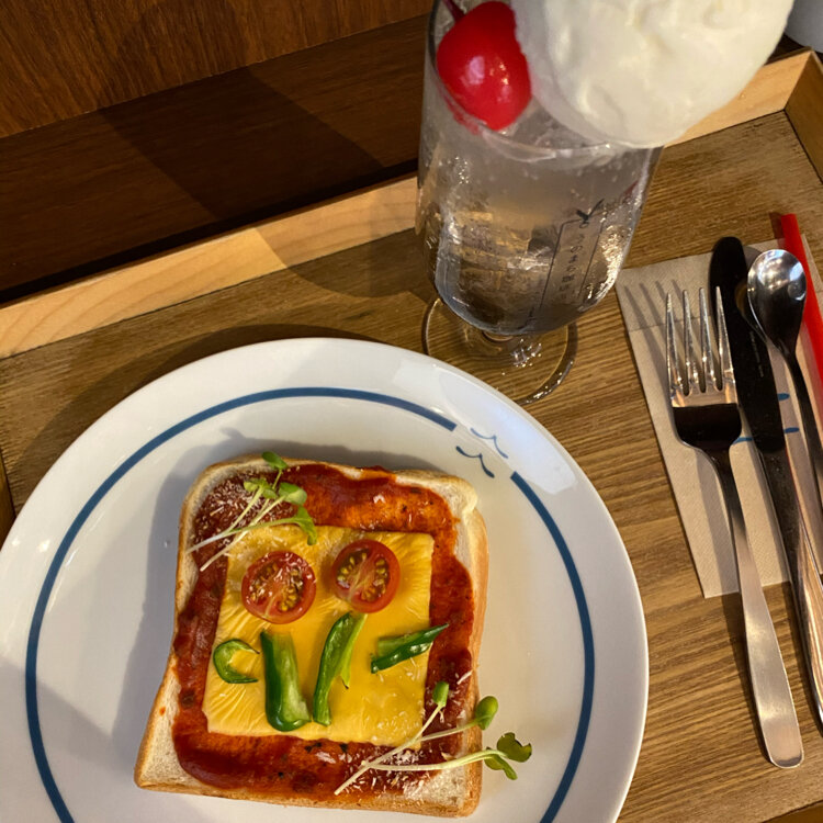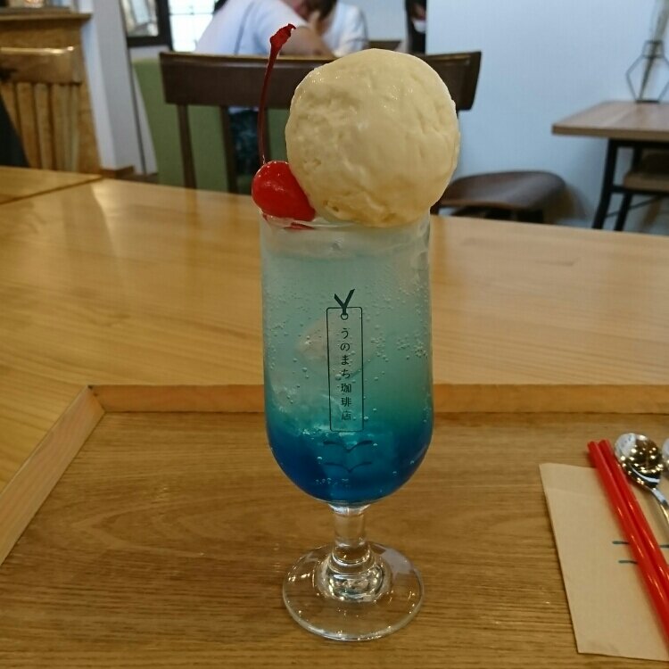 まん丸アイスに綺麗な透き通った青🍹夏空みたいなクリームソーダ😊☀ 色味は他にも赤、緑、紫など6種類くらいありました👏 街中の本屋さんにはないここでしか出会えない本も読めるので1人でゆっくりやお友達と楽しむのもオススメです📖 私は「サザエさんの悲劇」をチラ読み😁タラちゃんが最初に話した言葉は?の目次になんとなく気になって(笑) セルフ形式なのも気軽で良かったです💓